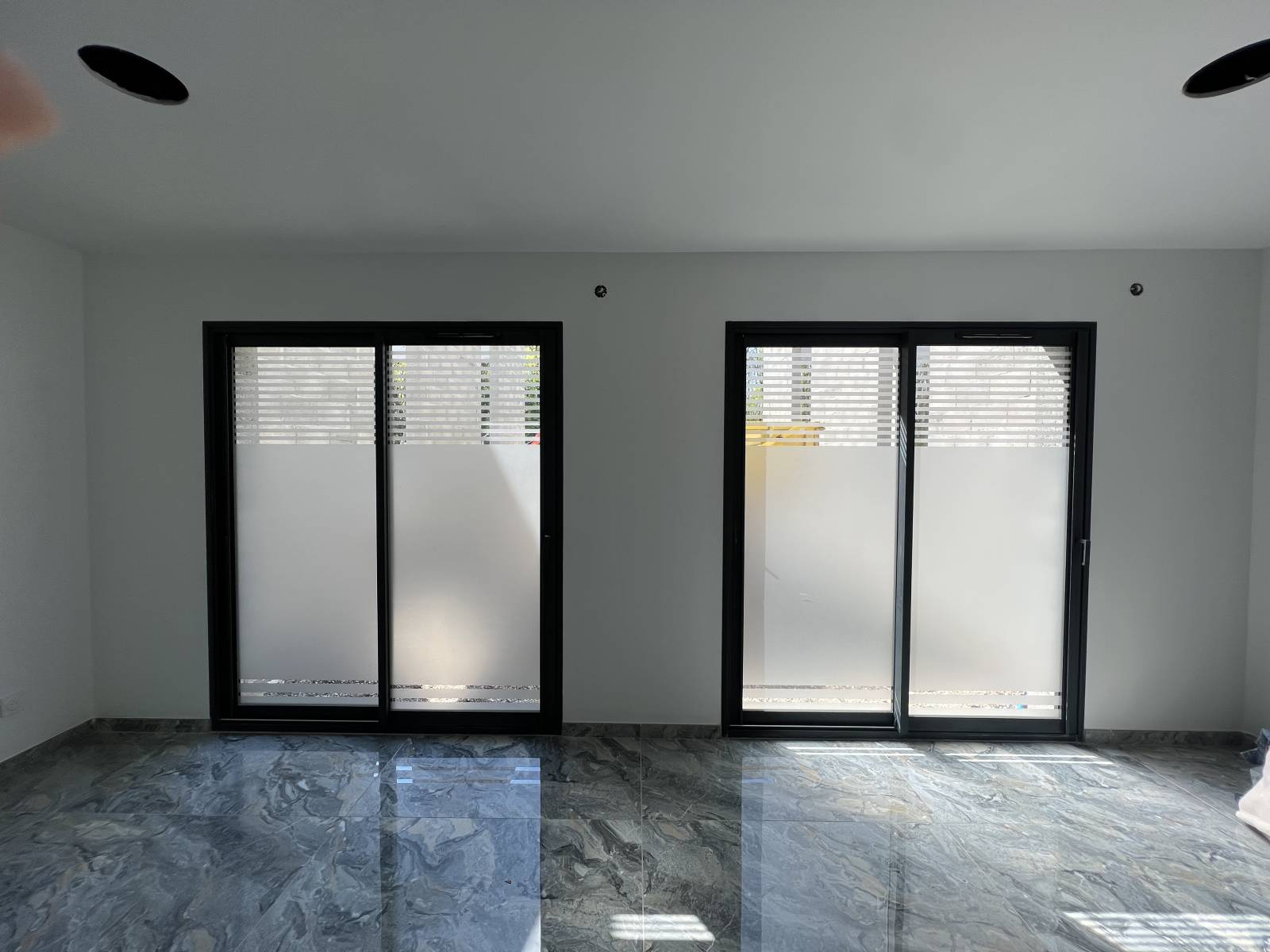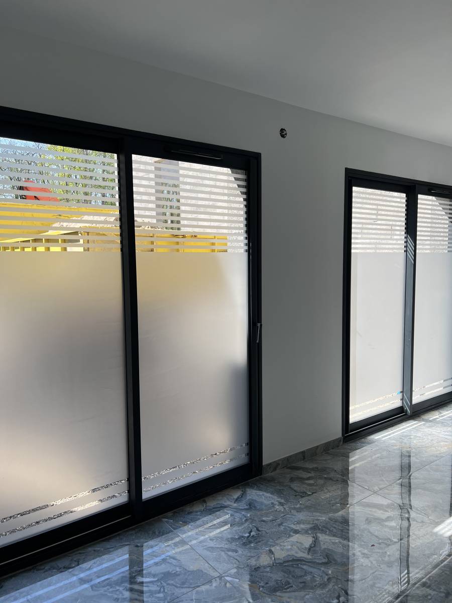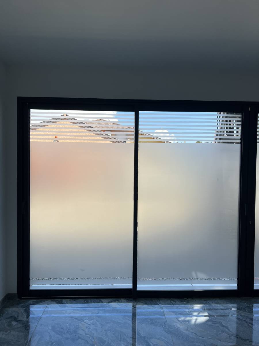 Pour ce projet, nous avons choisi de laisser des bandes de 20 millimètres en haut et en bas, permettant à la lumière naturelle d’entrer tout en masquant les zones sensibles.